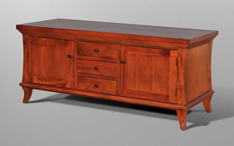 Wooden TV Stand from Wisanka Indonesia. Closed impression is very visible on this furniture with the installation of the 2 doors and 3 drawers on the middle. Arnotts TV stand will create a delightful space in the living area.